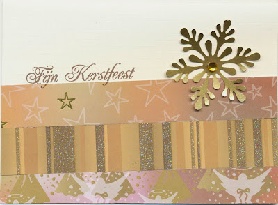 I had a lot of pieces left from the previous card I've made so I used them up and made another two cards with it. First is for the challenbge at LIMs, where you had to use something metal on your card. If you look very closely you can see I've put a silver coloured spacer in the middle of the flower. I hope it's big enough not to be disqualified from the challenge ;). The other card is just for stock. xoxoxo